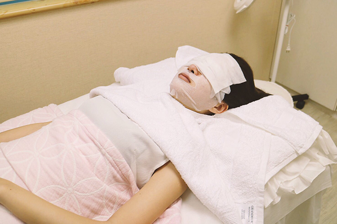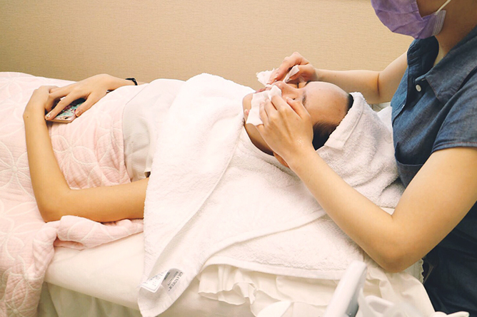 護理師很溫柔的幫我上導入的保養品冰冰涼涼的,非常助眠