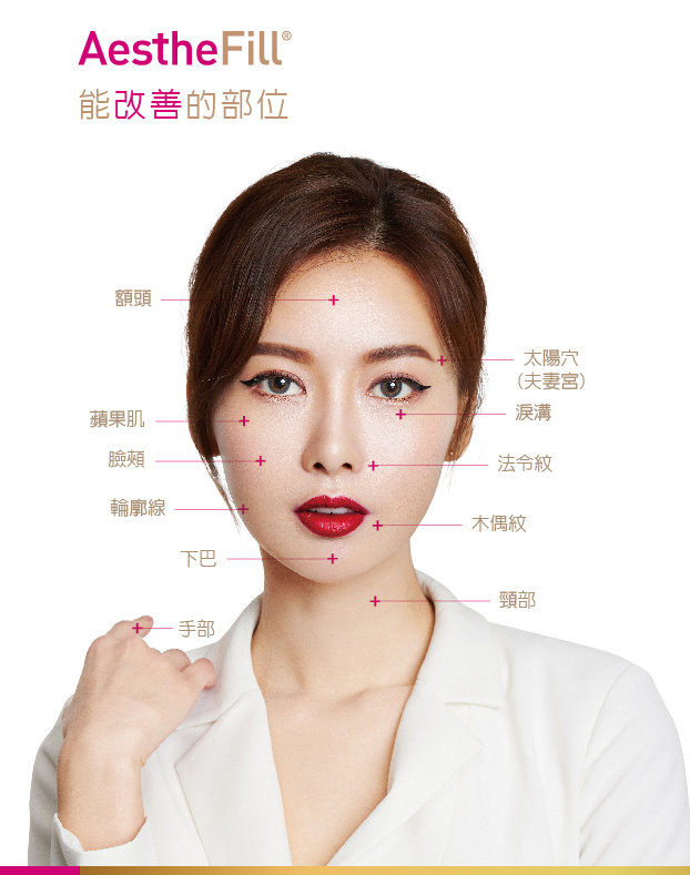 A:AestheFill®艾麗斯適合用於鼻唇溝皺褶的矯正及深度皺紋,淺度皺紋與面部整體