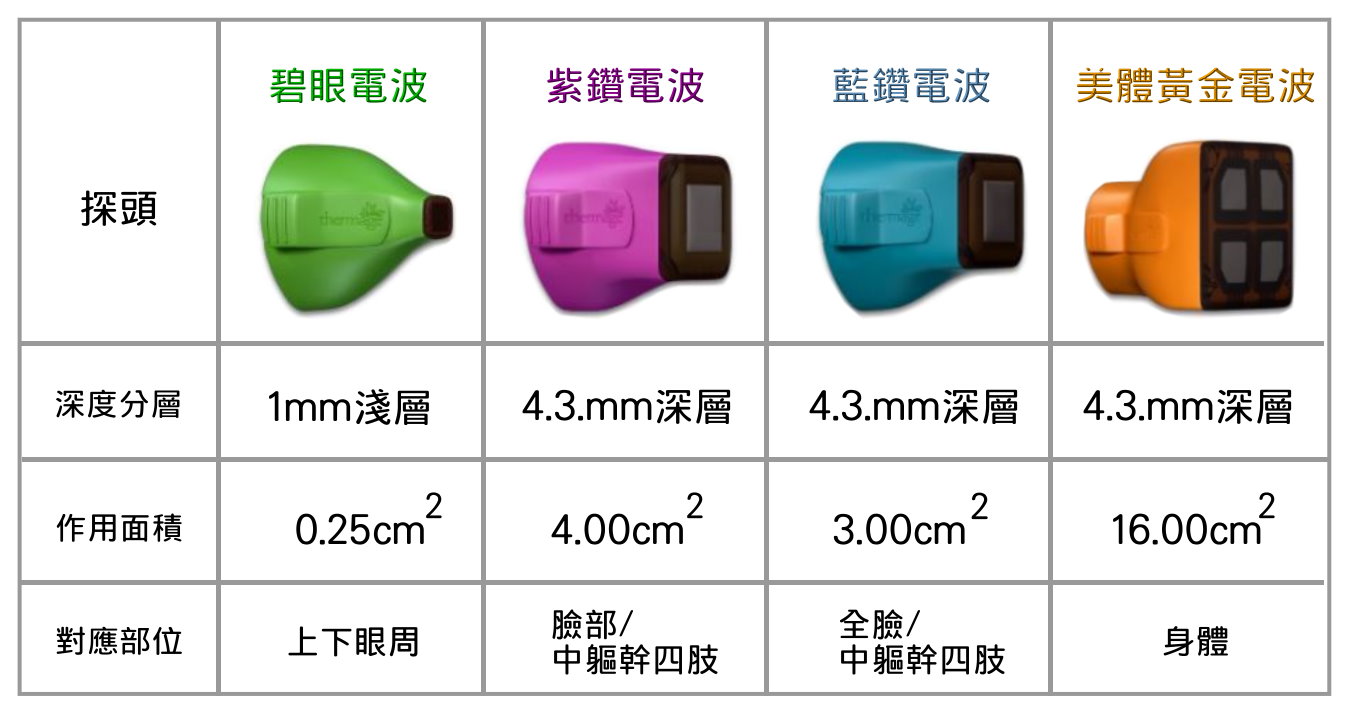 ●四種能使用於不同部位的探頭,能運用於全身肌膚,更能針對個人需求安排專屬的客製