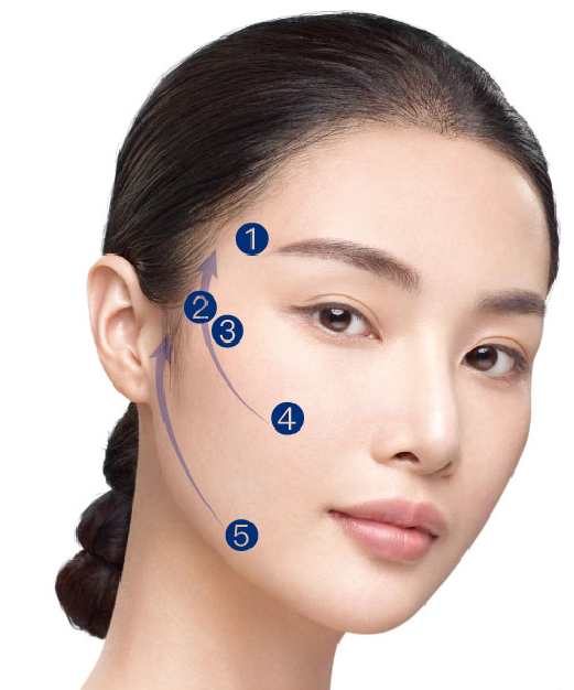 1. 從兩側髮際線施打NASHA[純粹]玻尿酸拉提上段臉